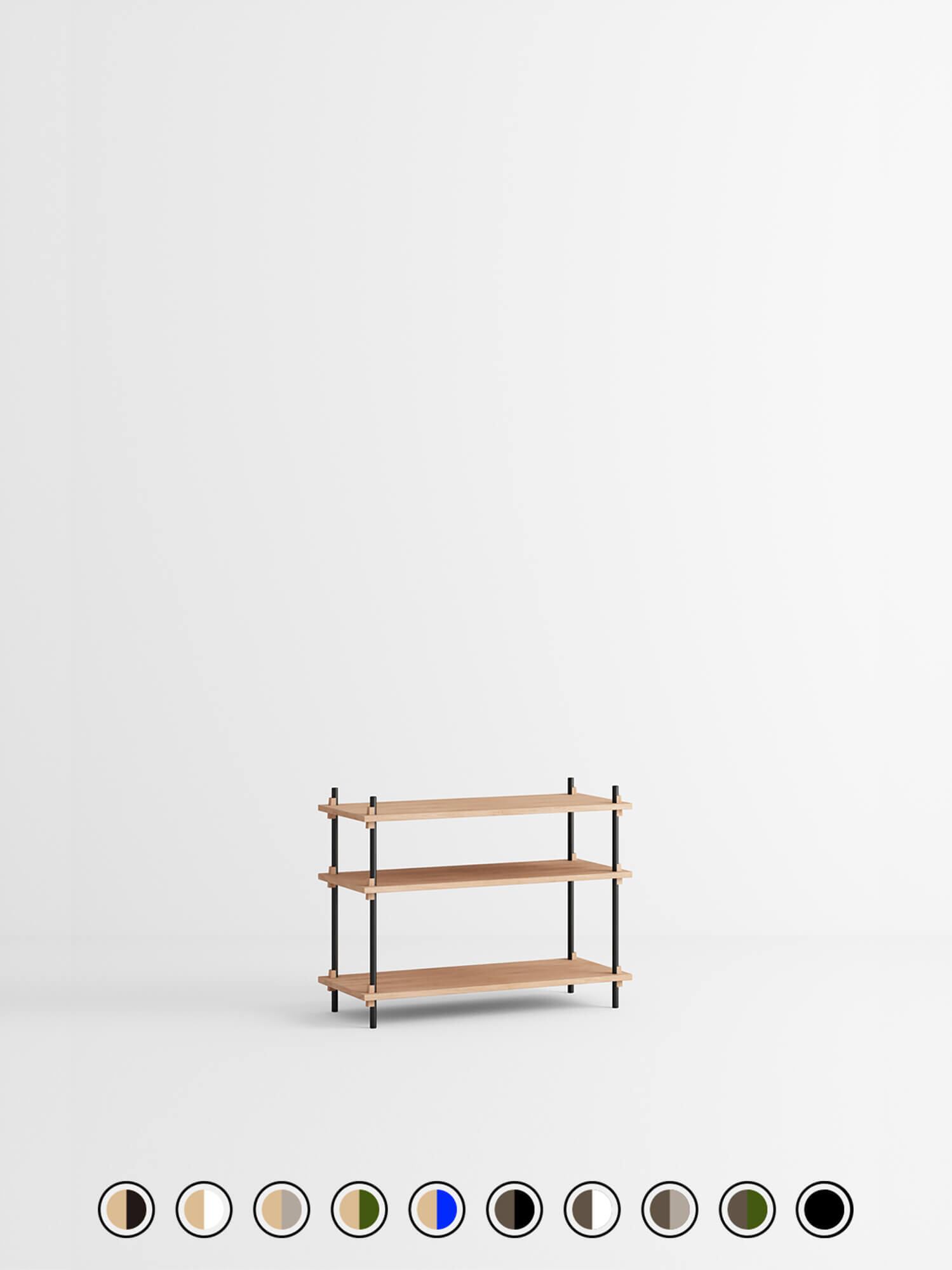 北欧デンマークのデザインブランド [MOEBE / ムーべ] による、シンプル、機能的でフレキシブルなシェルビングシステムの高さ65cm、棚板3枚のセットです。