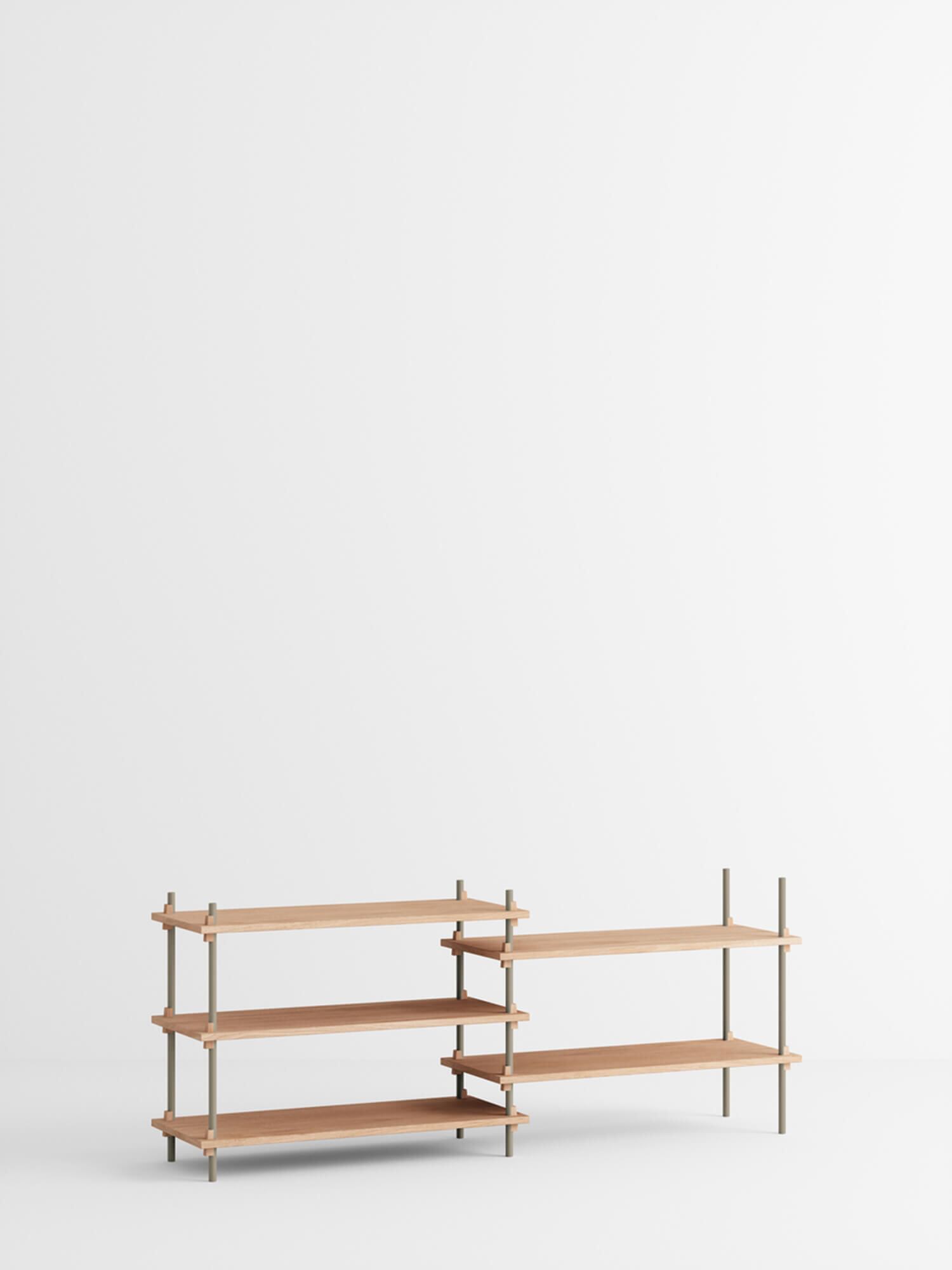 北欧デンマークのデザインブランド [MOEBE / ムーべ] による、シンプル、機能的でフレキシブルなシェルビングシステムの高さ65cm、2連結で棚板が5枚のセットです。
